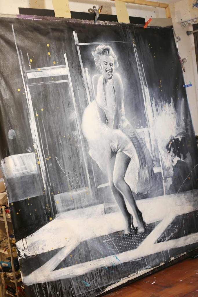 夢碎星光大道的瑪麗蓮夢露 是當代藝術家羅卓睿老師的一幅引人入勝的畫作,向好萊塢巨星瑪麗蓮夢露及其在 1955 年電影《七年之癢》中著名的”裙子場景”致敬。這幅畫不僅歌頌了夢露傳奇般的美貌和作為文化偶像的地位,而且還從戈特弗里德·郝文(Gottfried Helnwein)著名的畫作和同名海報《夢碎星光大道》中汲取靈感。