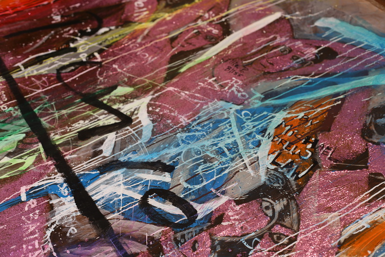 Michael Andrew Law’s “Les Demoiselles d’Avignon by Picasso” (2017) is an artistic tour de force, skillfully blending historical storytelling and innovative mixed-media techniques. Through the use of glitter, diamond dust, and colorful graffiti-style text, Law creates a visually stunning tribute to Picasso’s seminal work. His painting not only offers a unique aesthetic experience but also encourages a richer understanding of the painting’s historical context, underlining the lasting relevance of Picasso’s revolutionary impact on the world of art.