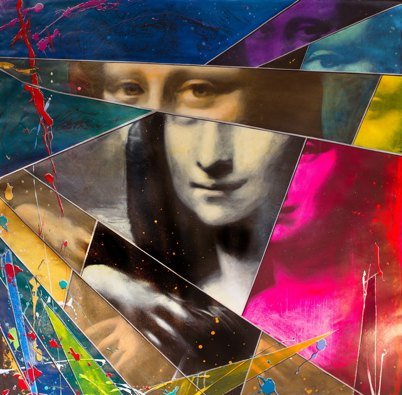 現代美術の世界で、マイケル・アンドリュー・ローの作品はしばしば、クラシックなリアリズムとポップアートの要素を独自のブレンドで取り入れることで目立ちます。その融合を力強く示す例として、2017年のリネンキャンバスに描かれた油彩とアクリルの作品「モナ・リザの笑顔とダ・ヴィンチの顔 – 現代のロイ・リキテンスタイン」があります。これは彼の2016年のシリーズ「現代のポップ」または「現代のリキテンスタイン」から取られたものです。