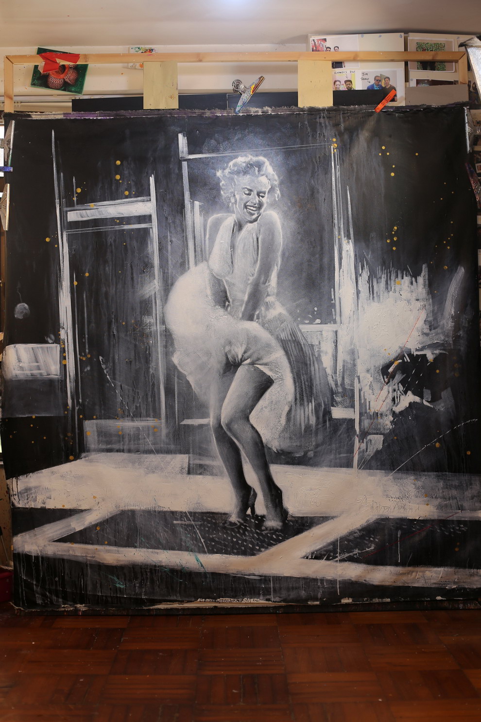 마이클 앤드류 로는 이 유명한 장면을 대담하고 현실적인 묘사로 재현하였습니다. 그의 작품은 몬로의 아름다움과 순진함을 포착하는 동시에, 그녀의 삶에서의 복잡성과 취약성을 강조하고 있습니다. 이것은 헬른바인이 ‘부서진 꿈의 거리’에서 그린 할리우드 아이콘들의 고독과 절망을 반영하는 것처럼 보입니다.