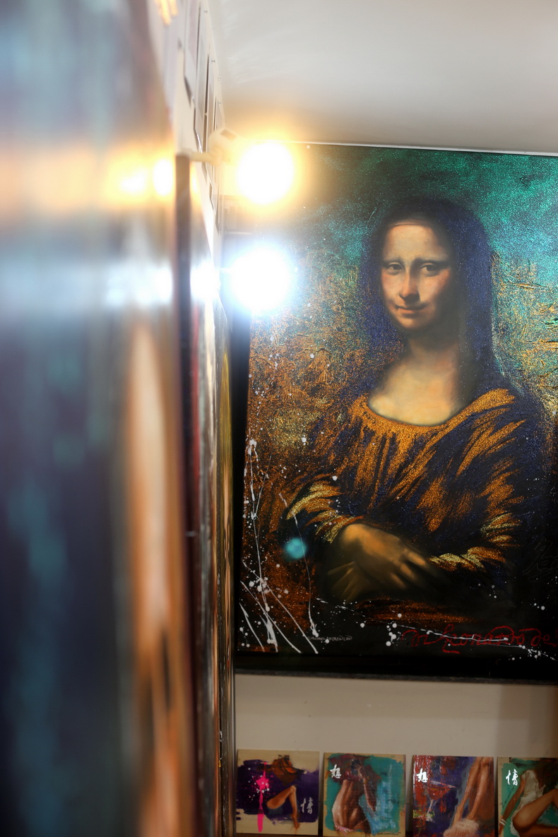 Law’s latest oeuvre features an array of mixed-media artworks painted on large linen canvases. He adeptly integrates a variety of materials, including oil, acrylic, glitter powder, and a subtle sprinkling of diamond dust. The amalgamation of these various mediums harks back to the traditional method of combining pigment powder with linseed oil, demonstrating Law’s ability to harmonize the traditional with the contemporary in his artistic practice.
