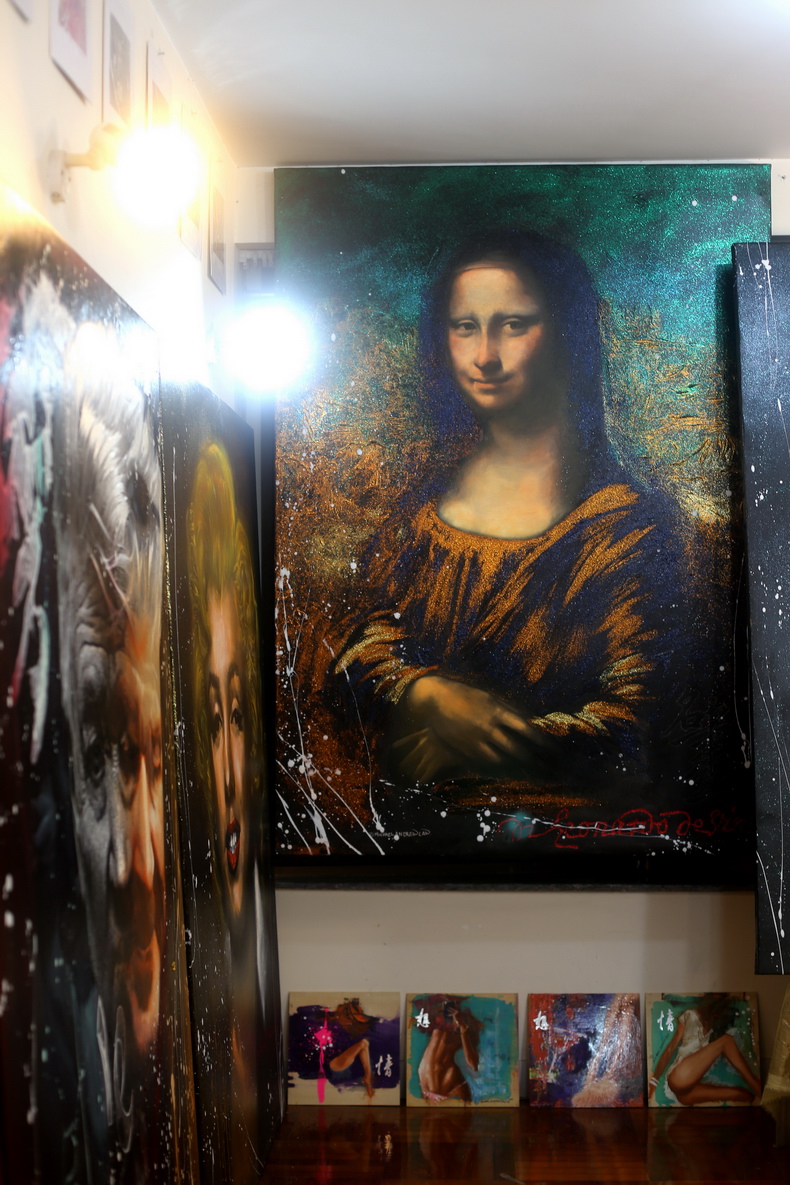 This series showcases Law’s vibrant reinterpretations of iconic works of art. Included in this pantheon are Leonardo da Vinci’s “Mona Lisa,” Picasso’s “Les Demoiselles d’Avignon,” Warhol’s “Monroe,” and Edouard Manet’s “Luncheon on the Grass.” But Law does not limit his artistic dialogue to these works alone. He also engages with Édouard Manet’s “Olympia,” Johannes Vermeer’s “Girl with a Pearl Earring,” Helmut Newton’s 1980’s “The Big Nude,” Rembrandt’s “Self-Portrait with Two Circles,” Gerhard Richter’s “Tante Marianne,” and Jean-Michel Basquiat’s “Dos Cabezas.”